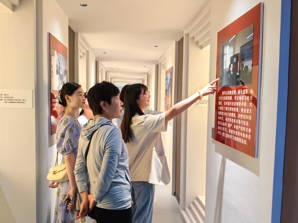 在校園文化漫步中,參觀者聆聽游覽校園風景,生動感受從學校誕生、發展到轉型、更名各個重要階段的學校發展史,在感悟河開文化內涵中汲取精神動力。