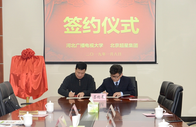 1月8日下午,我校與北京世紀超星信息技術發展有限公司戰略合作簽約儀式在石家莊舉行。校長鄧明立與超星集團總經理闕超正式簽署戰略合作協議并為資源制作基地揭牌。