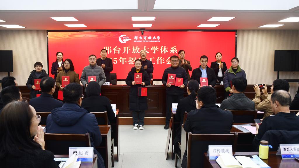 會上,黨委副書記霍秀申宣讀了《邢臺開放大學關于表彰2024年度開放教育招生工作先進集體、先進個人的決定》,領導班子為招生工作先進集體和先進個人頒發(fā)了獎牌和證書,先進集體代表威縣開放大學副校長胡金濤、先進個人代表隆堯開放大學校長徐璟琨和寧晉開放大學教師賈玲分別作了典型發(fā)言,黨委委員、副校長楊密婷對2025年招生工作進行了安排部署。