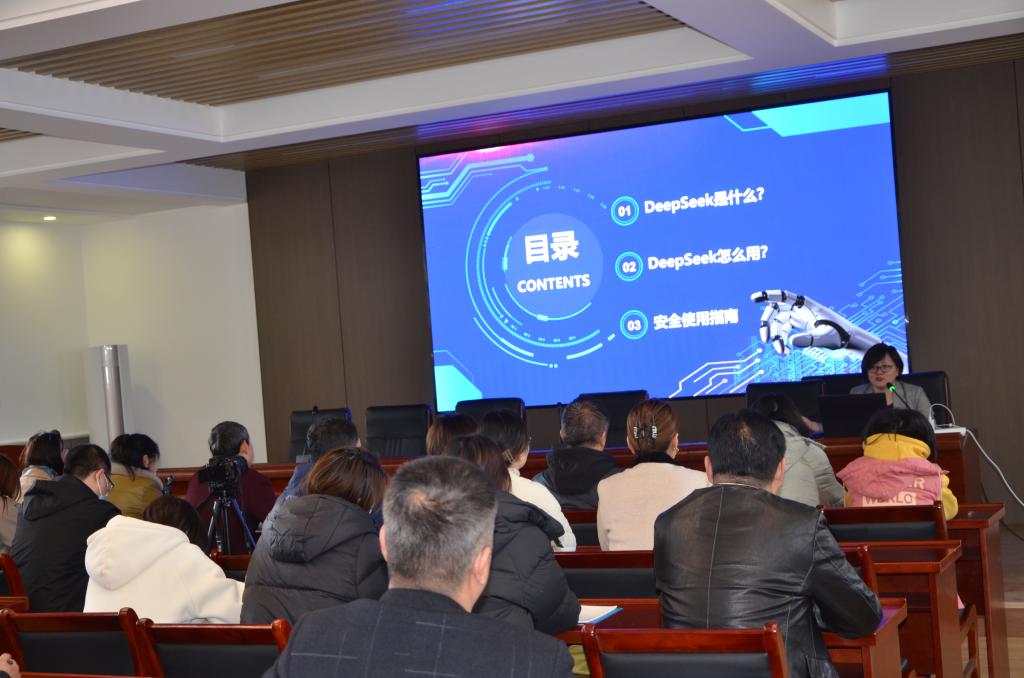 本次培訓由學校計算機教研室主任黃蕊老師擔任主講人,她以“Deepseek是什么、Deepseek怎么用、DeepSeek的安全使用”為邏輯主線,由淺入深,層層遞進,內容覆蓋DeepSeek眾多行業(yè)應用場景,通過案例演示與分步教學,幫助學員快速掌握數據檢索技巧、智能數據分析、多媒體制作等核心技能。同時她還介紹了即夢AI等與DeepSeek搭配后生成的更為出色的多媒體AI應用軟件。其中,國開學習網和DeepSeek的融合使用,為開放教育學生的學習打開了一扇新的大門。DeepSeek可以將學習平臺上的深奧知識進行生動講解,使學生茅塞頓開,提升學生的自主學習能力。最后,黃蕊老師講解了Deepseek使用過程中的隱私保護、內容審核、知識產權等方面的注意事項,引導學生建立“AI是工具,人才是決策者”這個理念。