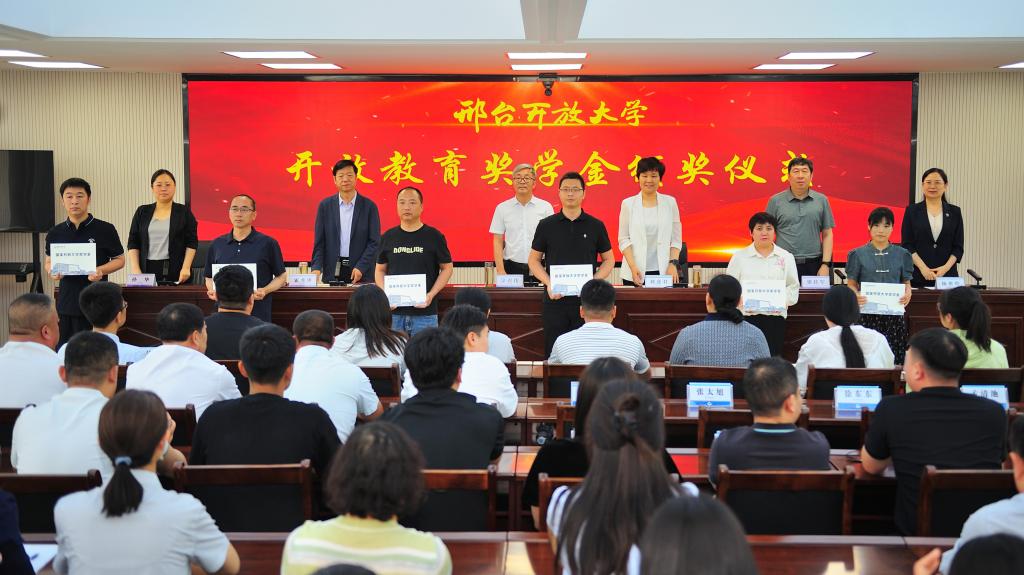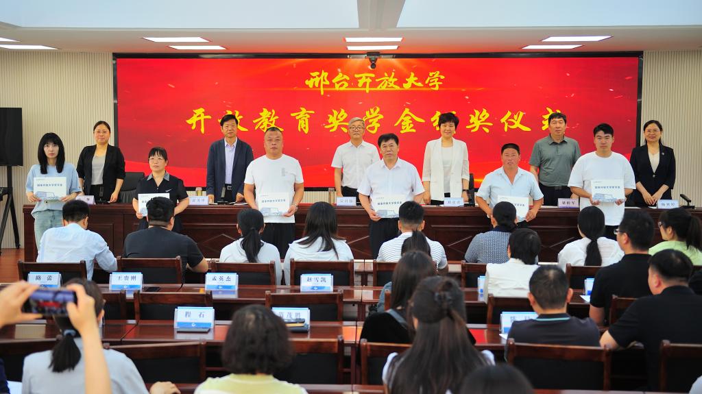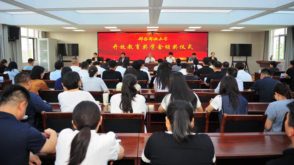 5月28日上午,邢臺開放大學舉行開放教育獎學金頒發儀式,為78名獲國家開放大學獎學金的學生頒發了獎金。儀式由校長劉彥君主持,黨委書記宗召偉出席儀式并講話,校領導霍秀申、梁桂軍、孫華、楊密婷和全體班主任老師以及獎學金獲得者代表共計70余人參加了儀式。