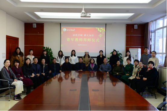教學支持部黨總支書記郝風武宣讀導師和青年教師名單。郭立志為導師頒授證書,并與結對的導師和青年教師合影。